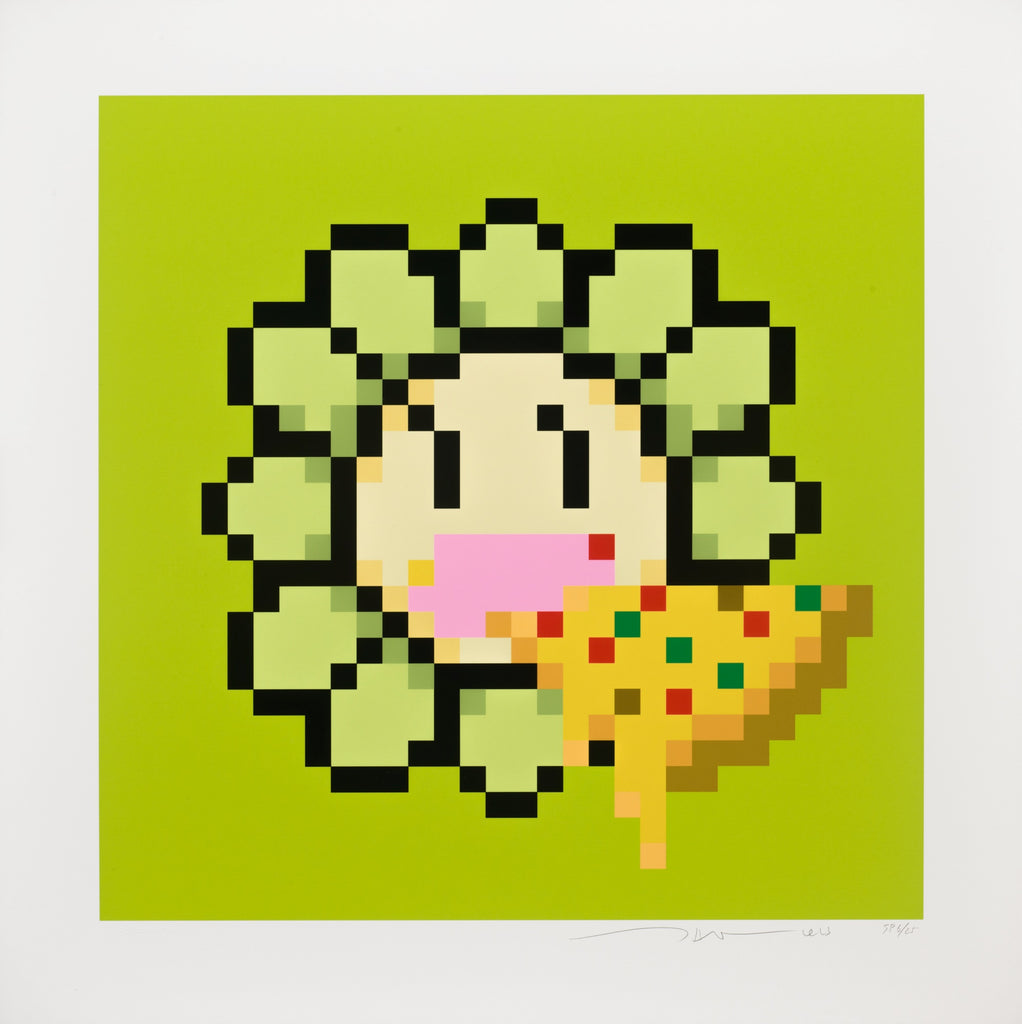 "Murakami.Flower #9489 Pizza" is an archival pigment print and screenprint created by Takashi Murakami in 2023 for his 'Murakami.Flowers' series. From the edition of 126, the artwork is signed, dated and annotated lower right. The image size is 15.75 x 15.75" and the artwork is framed in a contemporary white frame. The artwork ships framed and accompanied by a certificate of authenticity.