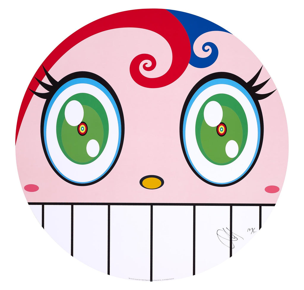 Takashi Murakami was born in Tokyo, Japan on February 1, 1962. His influence for art derives from his mother, who studied needlepoint and designed textiles. Murakami knew he wanted to be an artist when he grew up, and had always taken a large interest in animation and comics. He studied art throughout much of his adolescence, and applied to study at Tokyo National University. He was accepted and later received his Ph.D. in Fine Arts and Music, in which he learned “Nihong”, or traditional Japanese painting. After his studies, Murakami moved to New York in 1994 and was exposed to, and inspired by, Western contemporary artists like Jeff Koons.