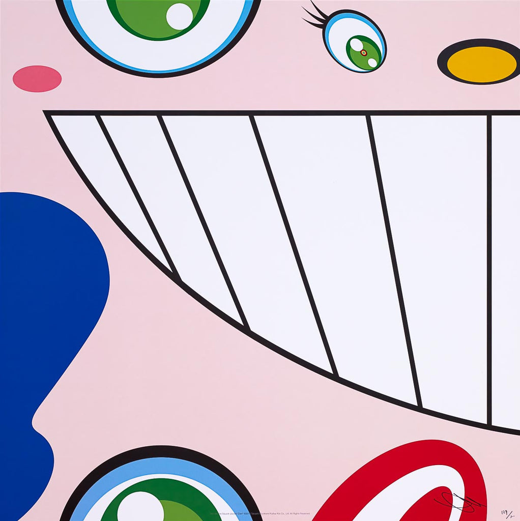 Takashi Murakami was born in Tokyo, Japan on February 1, 1962. His influence for art derives from his mother, who studied needlepoint and designed textiles. Murakami knew he wanted to be an artist when he grew up, and had always taken a large interest in animation and comics. He studied art throughout much of his adolescence, and applied to study at Tokyo National University. He was accepted and later received his Ph.D. in Fine Arts and Music, in which he learned “Nihong”, or traditional Japanese painting. After his studies, Murakami moved to New York in 1994 and was exposed to, and inspired by, Western contemporary artists like Jeff Koons.