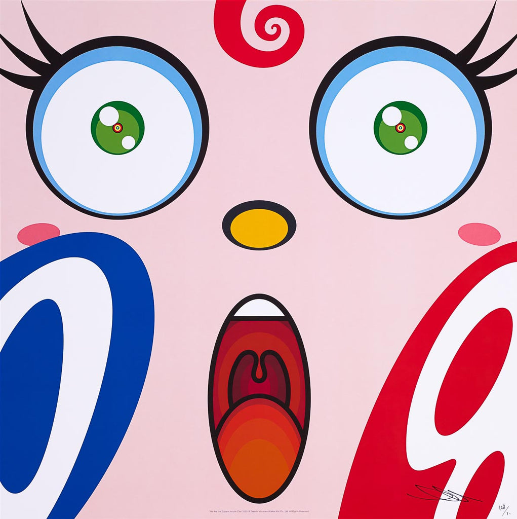 "We Are the Square Jocular Clan #3" is an offset lithograph created by Takashi Murakami for his 2018 series "We Are the Square Jocular Clan". From the edition of 300, the artwork is signed and annotated lower right. The image size is 18.75 x 18.75" and the artwork is framed in a contemporary white frame. The artwork ships framed and accompanied by a certificate of authenticity.
