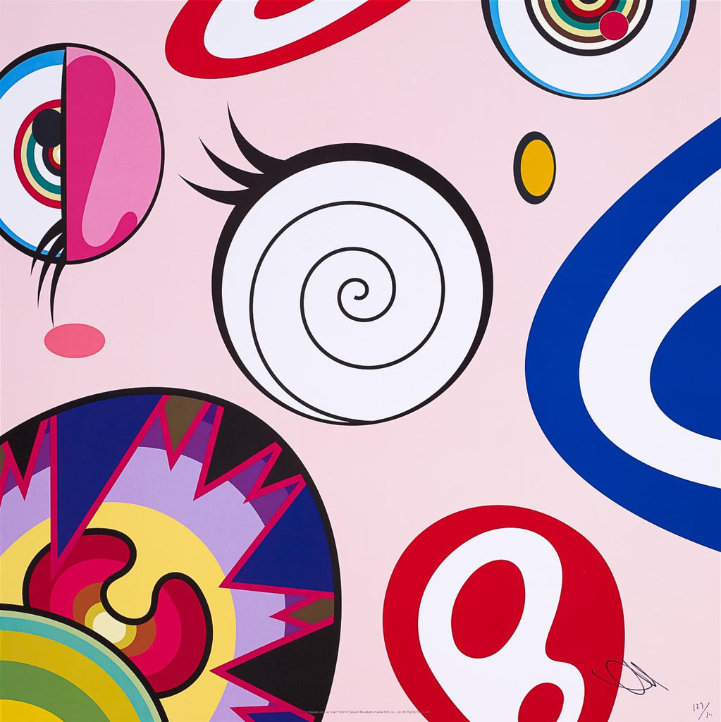 Takashi Murakami was born in Tokyo, Japan on February 1, 1962. His influence for art derives from his mother, who studied needlepoint and designed textiles. Murakami knew he wanted to be an artist when he grew up, and had always taken a large interest in animation and comics. He studied art throughout much of his adolescence, and applied to study at Tokyo National University. He was accepted and later received his Ph.D. in Fine Arts and Music, in which he learned “Nihong”, or traditional Japanese painting. After his studies, Murakami moved to New York in 1994 and was exposed to, and inspired by, Western contemporary artists like Jeff Koons.