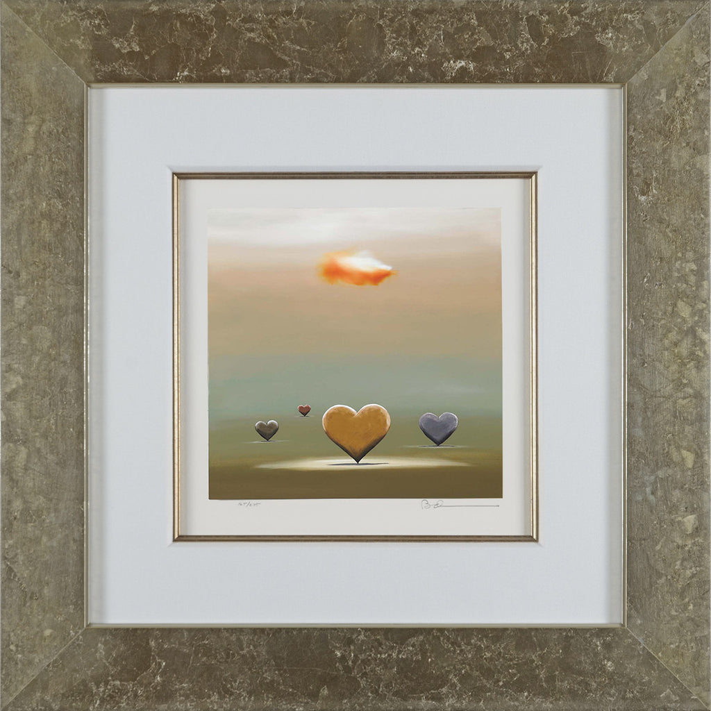“Heartland” is a classical Robert Deyber surrealistic artwork with a literal land filled with hearts which coincidentally are not red. The artist uses earth tones to depict heartland. ‘Heartland” is a lithograph created in 2009. “Chalk & Vermilion” and “Art Estampe” of Paris, came together and used a centuries old traditional method of stone lithography to ensure that the “Heartland” lithograph remains faithful to the artist’s vision. “Heartland” is a 9.5 x 9 – inch hand-signed lithograph created in 2007. Each lithograph is hand-pulled in an edition of 395 and initialed by the artist.