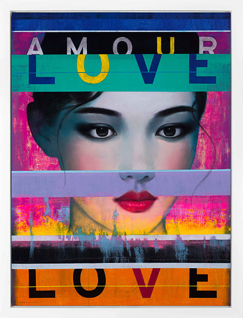 "Going Her Way" is an oil and mixed media on canvas painting created by François Fressinier in 2022. The artwork is signed 'FRESSINIER' lower left. The canvas size is 40 x 30" and the artwork ships framed in a contemporary white frame. The artwork ships framed.