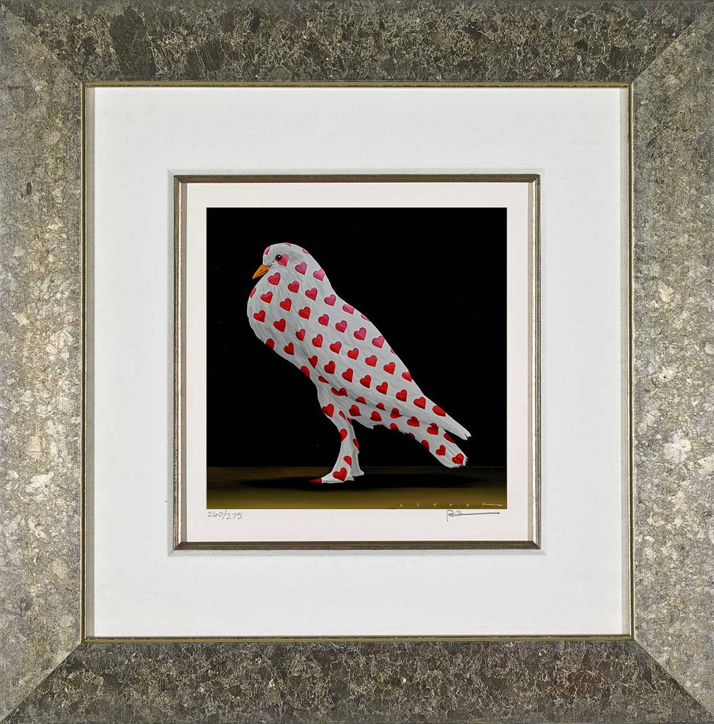 "Love Bird" is a 9.25 x 9 - inch Robert Deyber Lithograph. 'Love Bird" comes framed, signed and with a certificate of authenticity.
