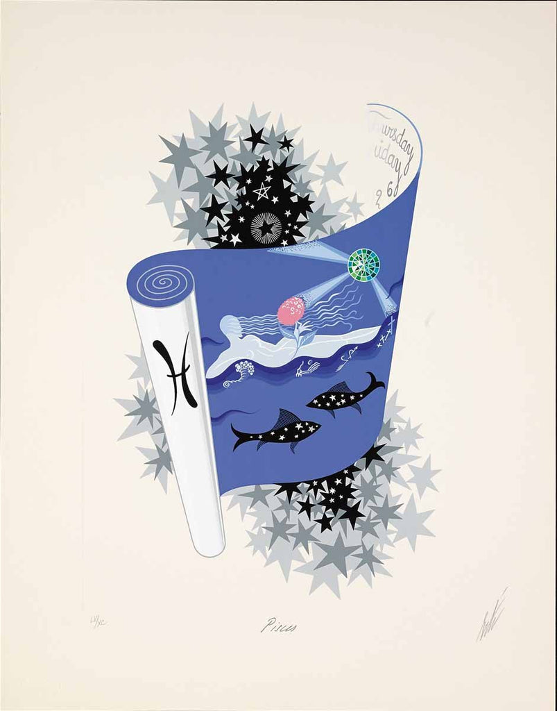 "Pisces" is a serigraph created by Erté in 1982 for his 'Zodiac' suite. From the edition of 475, the artwork is signed 'Erté' lower right. The image size is 25.5 x 20". The artwork ships framed and accompanied by a certificate of authenticity.