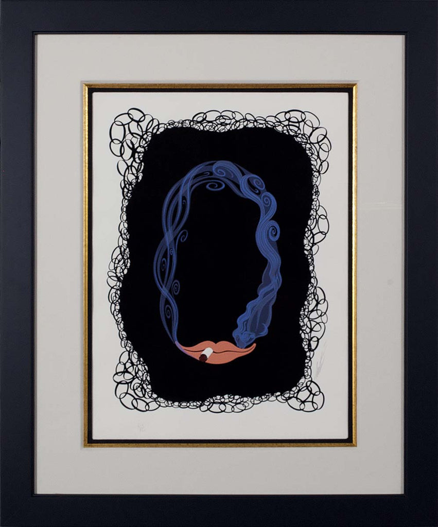"Numeral 0" is an embossed serigraph created by Erté in 1980 for his 'Numerals' suite. From the edition of 499, the artwork is signed 'Erté' lower right. The image size is 16.75 x 12.5" and the artwork is framed in a contemporary black frame. The artwork ships framed and accompanied by a certificate of authenticity.