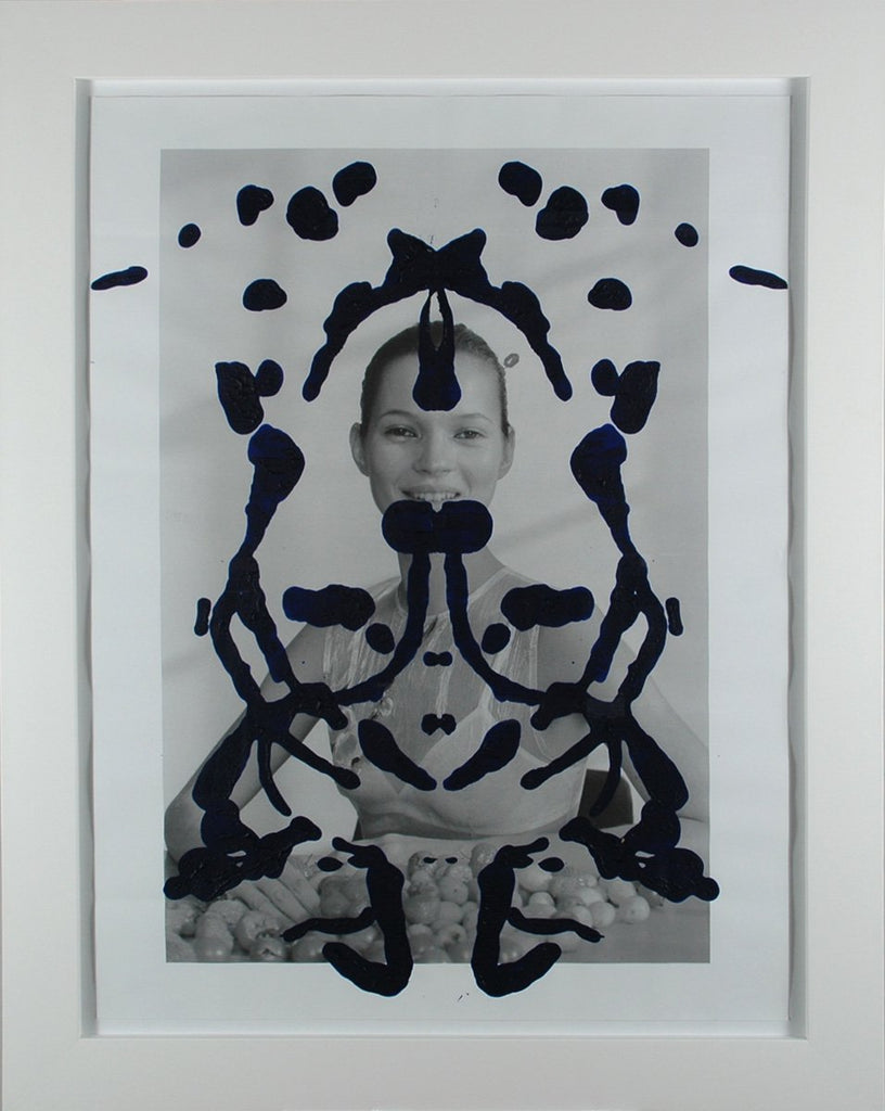 "Kate Moss Rorschach Portrait - Blue, 2013" is an acrylic on matte print paper created by Asher Penn. The image size is 48 x 36 - inch. The artwork ships framed and with a certificate of authenticity.