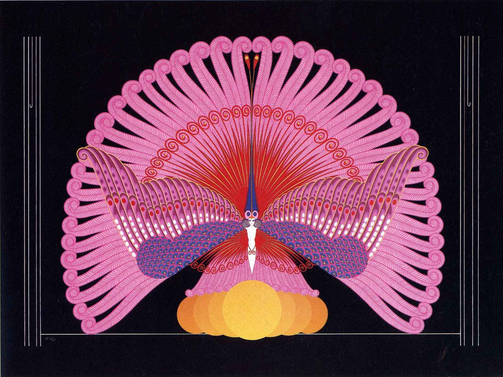 Erté was born Romain de Tirtoff in St. Petersburg, Russia on November 23rd, 1892 and was raised amidst Russia's social elite. At the age of five he created an evening gown for his mother and managed to persuade the adults to craft it, they were astounded by the results. In 1912, Romain left St. Petersburg for Paris at the age of nineteen with the aim of becoming an artist. After working with Paul " Le Magnifique" Poiret on several theatrical productions Romain, still under the pseudonym of Erte, began to work more independently. He hand-crafted original costume and fashion designs for many of the era’s most renowned actresses, including Joan Crawford, Lillian Gish, Marion Davies, Anna Pavlova, Norma Shearer, and others. His masterpieces for the stage included extravagant production designs at venues such as New York’s Radio City Music Hall, the Casino de Paris, and the Paris Opera. In 1915 he began his long professional relationship with Harper's Bazaar and created 240 covers for the esteemed magazine. For 6 months in 1916, Erté simultaneously worked with Vogue as well. As a result of his highly publicized success, Erté would later be called the father of the ‘Art Deco’ movement.