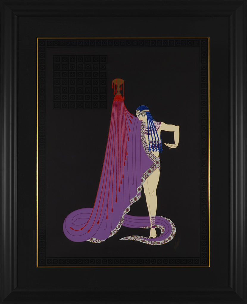 "The Slave" is a serigraph created by Erté in 1983. From the edition of 495, the artwork is signed 'Erté' lower right. The image size is 34.5 x 26.5" and the artwork is framed in a contemporary black frame. The artwork ships framed and accompanied by a certificate of authenticity.