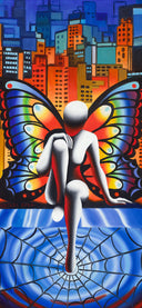 Mark Kostabi (b. 1960) is an American artist whose bold, faceless figures have become icons of contemporary art. Emerging in the 1980s East Village scene, Kostabi gained international recognition for paintings that merge Pop art, surrealism, and classical references into a highly distinctive style. His mannequin-like figures, posed in moments of longing, conflict, intimacy, or solitude, transcend individuality to speak to universal human experiences.