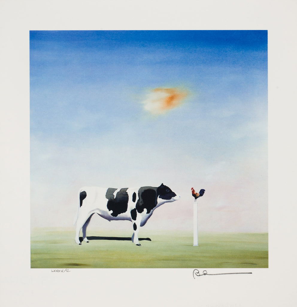 "Another Cock and Bull Story" is a lithograph on paper created by Robert Deyber in 2007. From the edition of 395,the artwork is initialed 'BD' lower right and annotated lower left. The image size is 9.5 x 9" and the artwork is framed in a contemporary, silver-tone frame. The artwork ships framed and accompanied by a certificate of authenticity.