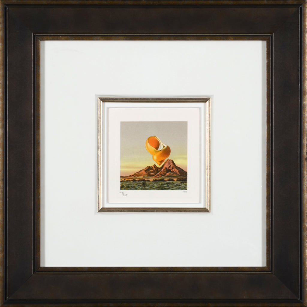 "Orange Shell" is a limited-edition, hand-signed & numbered lithograph created by using traditional stone lithography. Image size: 3.75 x 3.5 — inches. Paper size is 6 x 7 — inches. Fanny Brennan produced her stone lithograph on Arches Cover paper. Made in France, specifically for printmaking, Arches Cover has a pronounced grain, two watermarks, and two natural deckle edges.