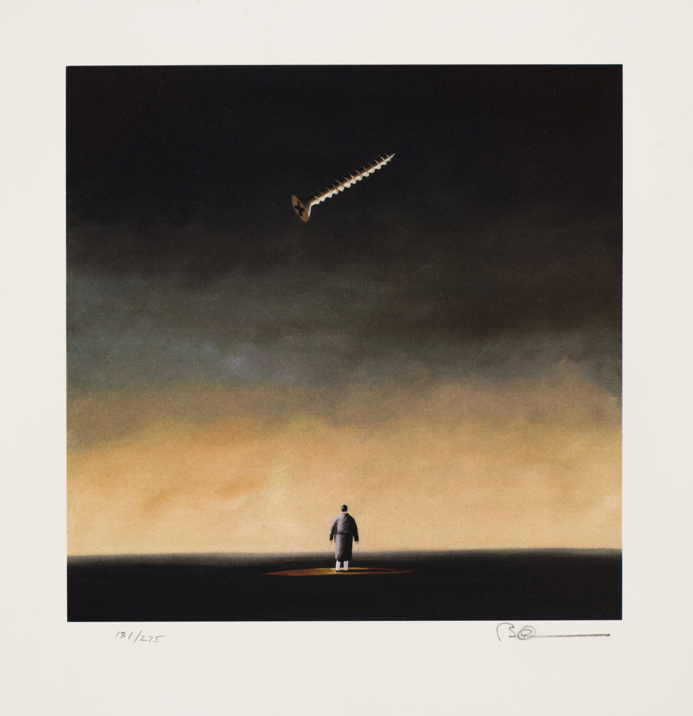 "Screw Up" is a lithograph on paper created by Robert Deyber in 2007. From the edition of 395,the artwork is initialed 'BD' lower right and annotated lower left. The image size is 9.5 x 9" and the artwork is framed in a contemporary, silver-tone frame. The artwork ships framed and accompanied by a certificate of authenticity.