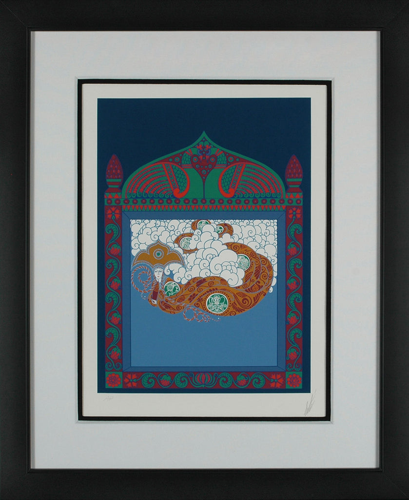 "Russian Fairy Tale" is a serigraph created by Erté in 1978 for his 'Twenties Remembered Again' series. From the edition of 424, the artwork is signed 'Erté' lower right. The image size is 18 x 13" and the artwork is framed in a contemporary black frame. The artwork ships framed and accompanied by a certificate of authenticity.