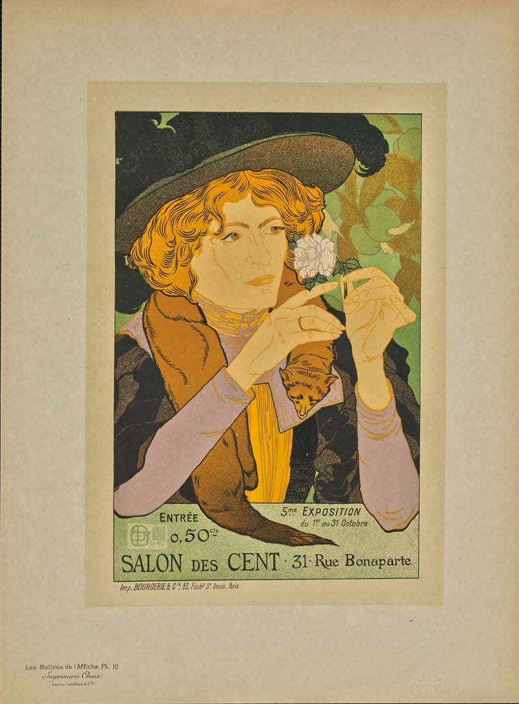 “Les Maitres De L’Affiche” (The Masters of the Poster) is a phrase that refers to one of the most prestigious and influential art publications in history. The 256 color plates that make up the suite represent a wide-ranging selection of outstanding original posters from the turn of the twentieth century when this popular art form first reached its peak. Early printed posters were very text-heavy, with relatively few illustrations. After all, they were created to advertise products, and adding an illustration to an advertisement in the mid-1800s was not commonplace. However, during the second half of the nineteenth century, when all types of commercial products were aesthetically upgraded, serious artists began to see the new possibilities in the poster medium. By linking their imagery to modern commerce, the thinking was that each would be enhanced by the value of the other.