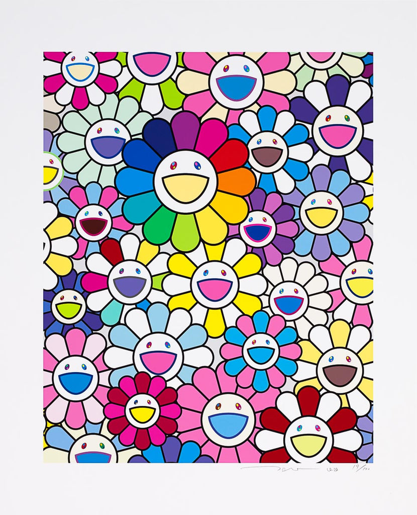 "Flowers of Hope" is an archival pigment print created by Takashi Murakmi in 2020. From the edition of 100, the artwork is signed, dated and annotated lower right. The image size is 14.62 x 11.75" and the artwork is framed in a contemporary white frame. The artwork ships framed and accompanied by a certificate of authenticity.