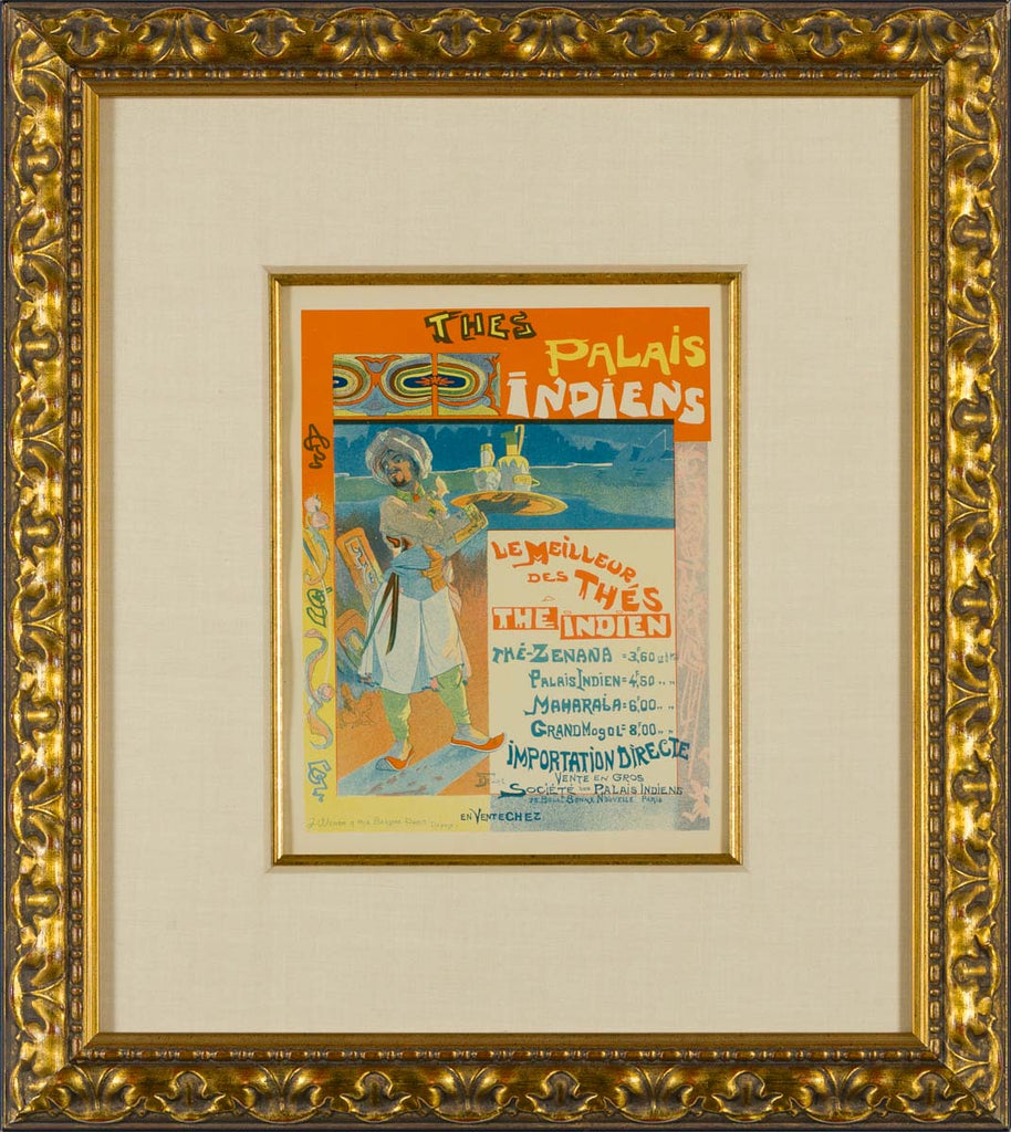 "Indian Palaces Teas (Plate 199)" is an original stone lithograph created by Georges de Feure in 1900 for Les Maîtres de l'Affiche. The artwork is framed with the latest archival framing techniques, and it is accompanied by a certificate of authenticity.