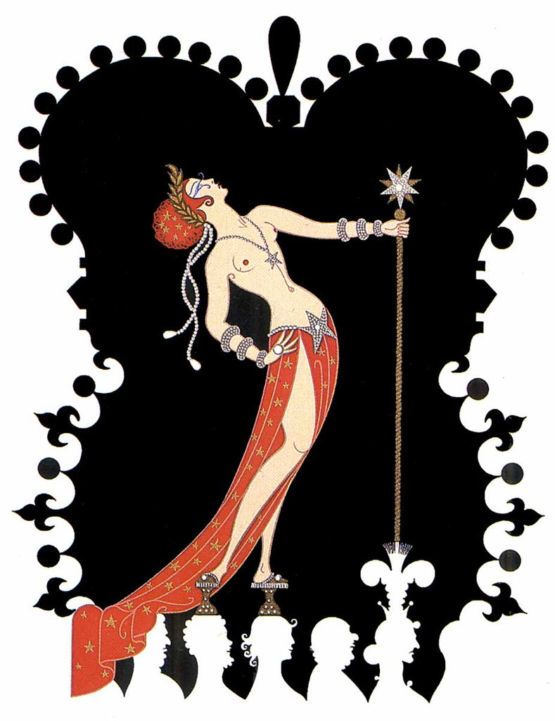 Erté was born Romain de Tirtoff in St. Petersburg, Russia on November 23rd, 1892 and was raised amidst Russia's social elite. At the age of five he created an evening gown for his mother and managed to persuade the adults to craft it, they were astounded by the results. In 1912, Romain left St. Petersburg for Paris at the age of nineteen with the aim of becoming an artist. After working with Paul " Le Magnifique" Poiret on several theatrical productions Romain, still under the pseudonym of Erte, began to work more independently. He hand-crafted original costume and fashion designs for many of the era’s most renowned actresses, including Joan Crawford, Lillian Gish, Marion Davies, Anna Pavlova, Norma Shearer, and others. His masterpieces for the stage included extravagant production designs at venues such as New York’s Radio City Music Hall, the Casino de Paris, and the Paris Opera. In 1915 he began his long professional relationship with Harper's Bazaar and created 240 covers for the esteemed magazine. For 6 months in 1916, Erté simultaneously worked with Vogue as well. As a result of his highly publicized success, Erté would later be called the father of the ‘Art Deco’ movement.
