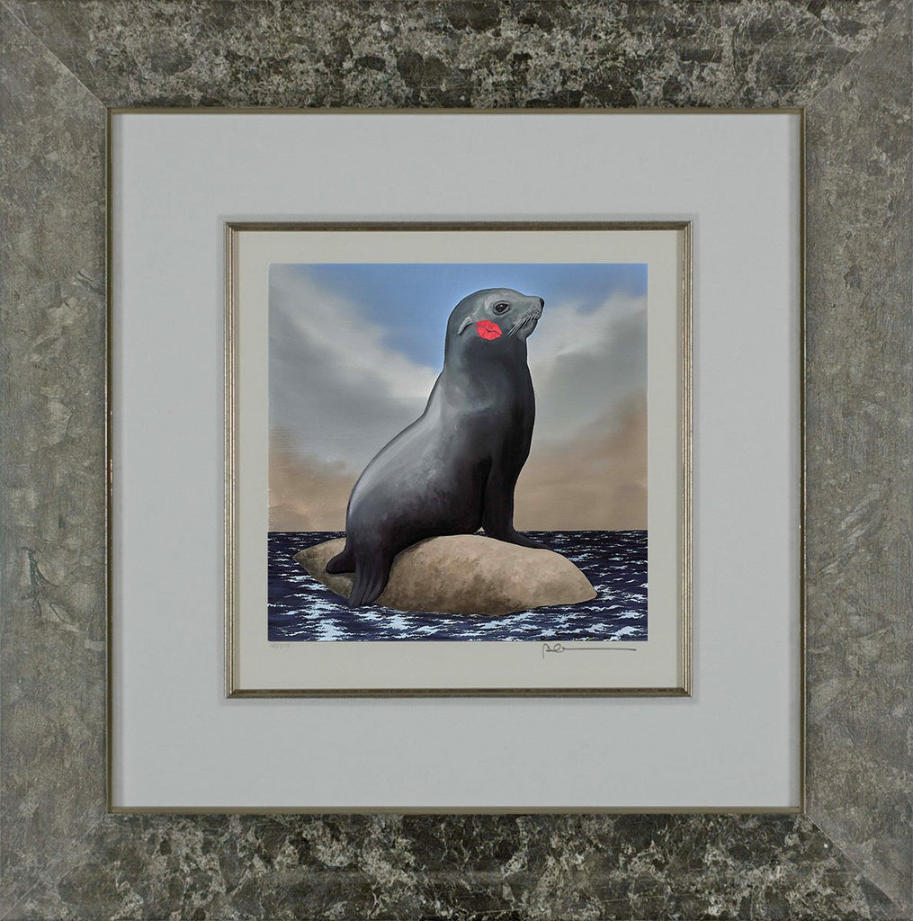 "Seal With a Kiss" is i 9 x 9-inch Robert Deyber Lithograph. "Seal With a Kiss" comes framed, signed and with a certificate of authenticity.