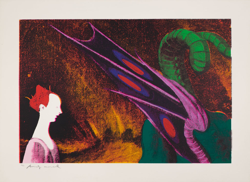 "St George and the Dragon (FS.II.326)" is a screenprint created by Andy Warhol for his series "Details of Renaissance Paintings" in 1984. From the edition of 107, the artwork is signed 'Andy Warhol' and annotated lower left. The image size is 25 x 37" and is framed in a contemporary white frame. The artwork ships framed and is accompanied by a certificate of authenticity.