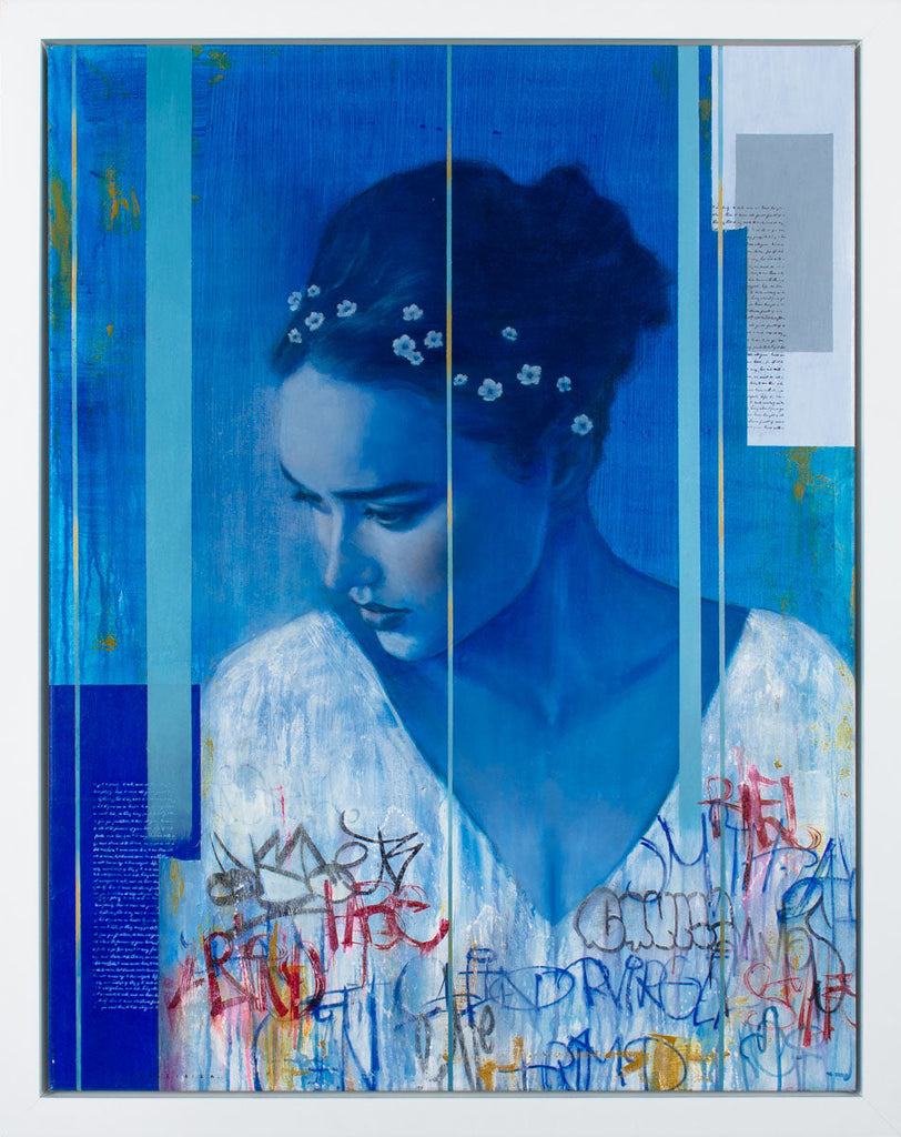 Born in Cognac, France in 1968 to scholarly portrait photographer parents with an affinity for aesthetics, it was fitting that modern figurative artist, François Fressinier, would develop a unique, enchanting style. His father’s admiration for the works of the Old Masters and his exposure to some of the world’s most historic places, along with France’s Gallo-Roman ruins and Gothic churches inclined François to explore and create figurative, symbolic artwork. In addition, his education at the Ecole Brassart in Tours afforded him the opportunity to study the drawings and paintings of old and new masters. He cites inspiration from artists like Rembrandt for showing us the soul of his sitters, Van Dyke for his elegance, Bonnard’s palette, Fuchs for the fantastic world he invented; all of which influence his style today.