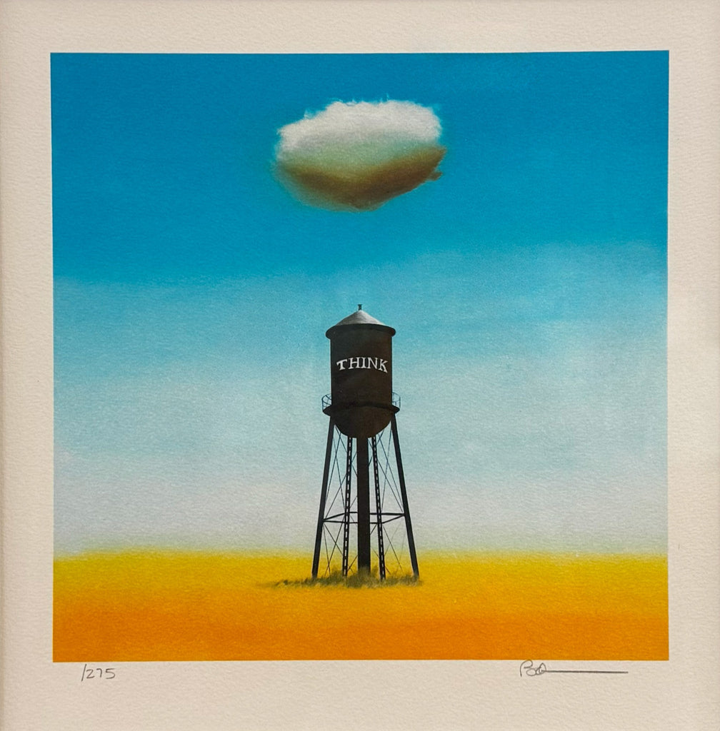 "The Think Tank" is a lithograph on paper created by Robert Deyber in 2007. From the edition of 395,the artwork is initialed 'BD' lower right and annotated lower left. The image size is 9.5 x 9" and the artwork is framed in a contemporary, silver-tone frame. The artwork ships framed and accompanied by a certificate of authenticity.